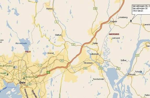 30 km north from Oslo - 20 minutes south from Oslo Airport, Gardemoen!